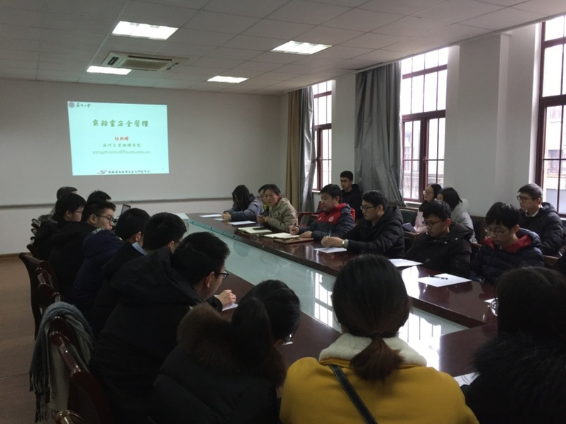 为进一步加强实验室安全管理工作,落实学校对实验室安全工作的要求和部署,1月9日下午2点在博习楼221举办了“实验诚可贵生命价更高”实验室安全培训专题讲座,本次讲座邀请了软凝聚物理与交叉研究中心杨朝晖教授主讲,学院党委书记孙德芬、副院长方亮和近五十位研究生和实验室老师参加了此次培训。