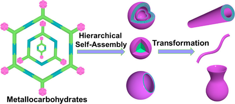 最近,软凝聚态物理及交叉研究中心丁泓铭副教授(共同通讯作者)与复旦大学陈国颂教授及华东师范大学杨海波教授合作,在糖修饰金属大环逐级自组装方面取得重要进展,相关工作以“Diversiform and Transformable Glyco-Nanostructures Constructed from Amphiphilic Supramolecular Metallocarbohydrates through Hierarchical Self-Assembly: The Balance between Metallacycles and Saccharides”为题发表在美国化学会·纳米期刊[ACS Nano, 13, 13474-13485 (2019)]。