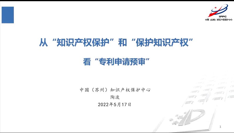 中国(苏州)知识产权保护中心陶波部长紧密围绕知识产权的定义、类型、保护及专利申请预审等方面做题为《从“知识产权保护”和“保护知识产权”看专利申请预审》的报告。