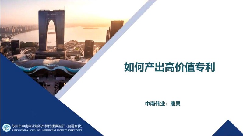 苏州市中南伟业知识产权代理事务所唐灵从如何在科研中产生专利、如何系统的产生专利、如何判断专利撰写质量等三个方面阐述了如何产出高价值专利,为师生撰写专利指明了方向。