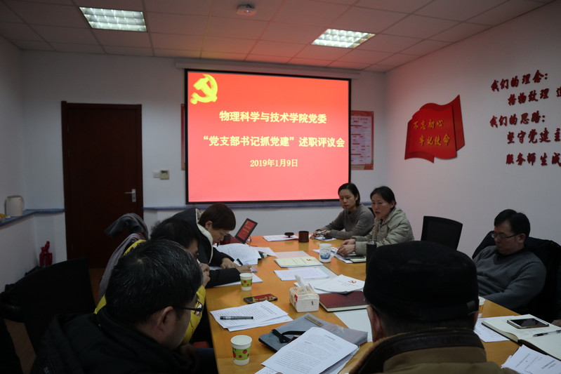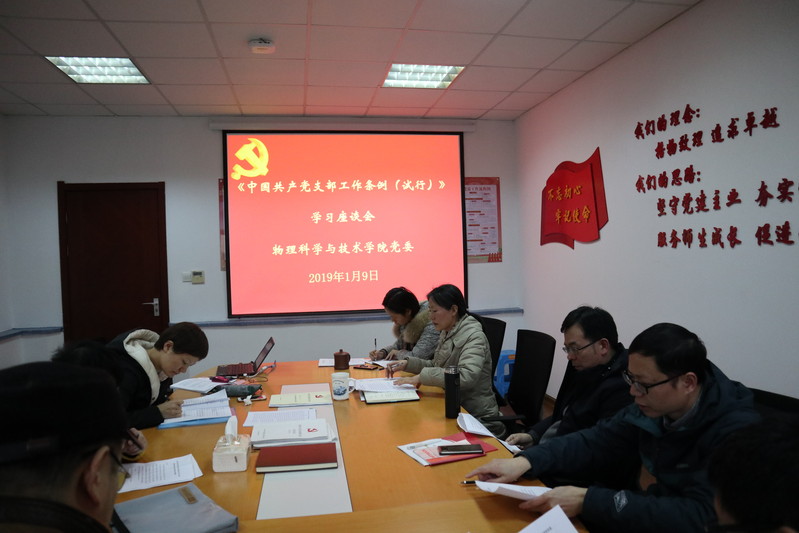 1月9日下午,物理科学与技术学院党委召开学习贯彻《中国共产党支部工作条例(试行)》座谈会暨党支部书记抓党建述职评议会。学院党委委员、各支部书记、专职组织员参加了此次会议,会议由学院党委书记孙德芬主持。全体参会人员首先一起集中学习了《中国共产党支部工作条例(试行)》。孙书记指出,《条例》的制定和实施,为新时代党支部建设提供了基本遵循,对巩固党长期执政的组织基础具有十分重要意义,并要求学院各支部要组织专题学习,从严落实《条例》的各项规定。