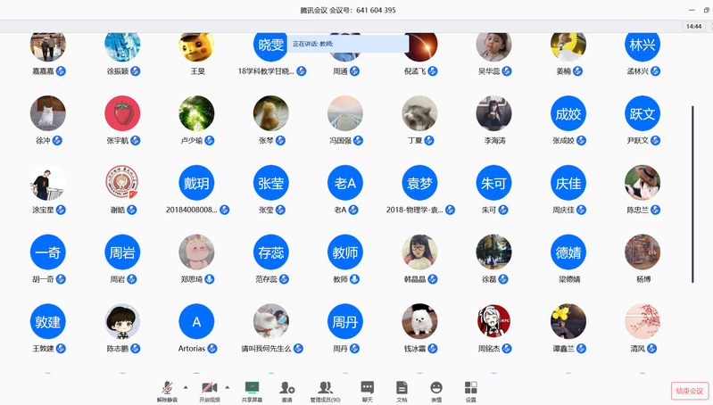 3月25日下午,在全国上下积极抗击新型冠状病毒肺炎疫情的关键时刻,为进一步贯彻落实学校关于新冠肺炎疫情防控要求和相关通知精神,助力打赢疫情防控阻击战,增强防范意识和责任意识,物理科学与技术学院对2018级全体研究生召开了一次“云会议”。学院党委书记孙德芬、研究生秘书张宇航、研究生辅导员郭永坤以及学院全体2018级硕博研究生参加了此次会议。会议由学院院长高雷主持。