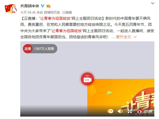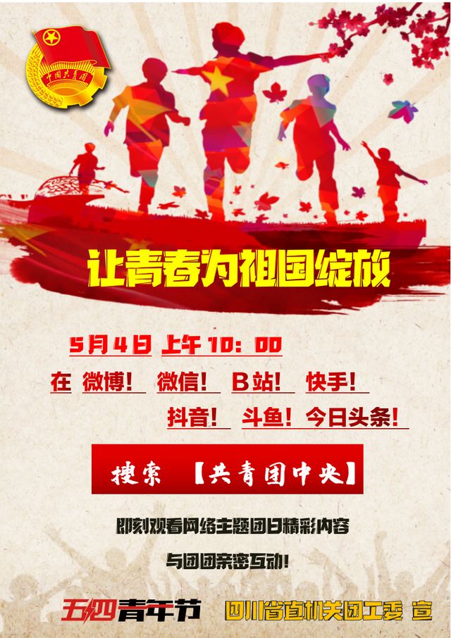 5月4日10:00,共青团中央账号以及学习强国平台同步举办“让青春为祖国绽放”网上主题团日活动,于微博、微信、B站、快手、抖音、斗鱼、今日头条等各大网络平台同步直播。我院师生认真收看并积极参加了本次网上主题团日活动。
