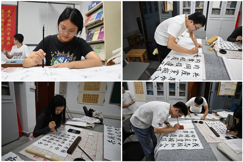在钢笔字大赛中,同学们用心书写着每个笔画,展示自己最好的状态,把对党的忠诚与热情凝于笔尖、落于纸上。在展出作品中,可以体会到氤氲其中的笔墨之香、文雅之风。