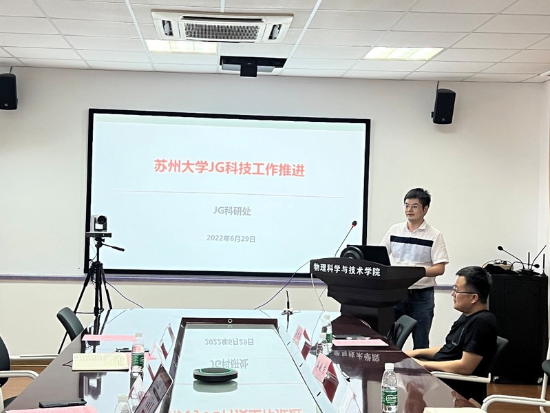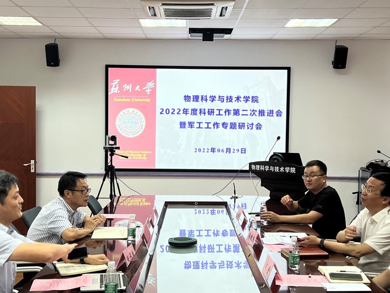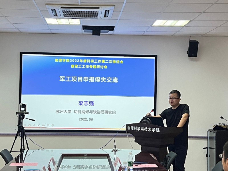 为拓展学院老师对军工科研项目申报及管理流程等方面的工作能力,6月29日下午,校科技党委和物理科学与技术学院党委在博习楼221举行了党建共建活动暨物理科学与技术学院2022年度科研工作第二次推进会(军工工作专题研讨会)。校科技党委书记蒋敬东、军工科研处军工科技管理科史宇老师、纳米科学技术学院梁志强教授,物理科学与技术学院党委书记杨礼富、副院长赵承良、宋瑛林教授、发展合作办公室副主任周航及物理学院近三年引进的年轻老师、在站博士后及承担和对军工项目相关的教师参加此次活动。会议由赵承良副院长主持。