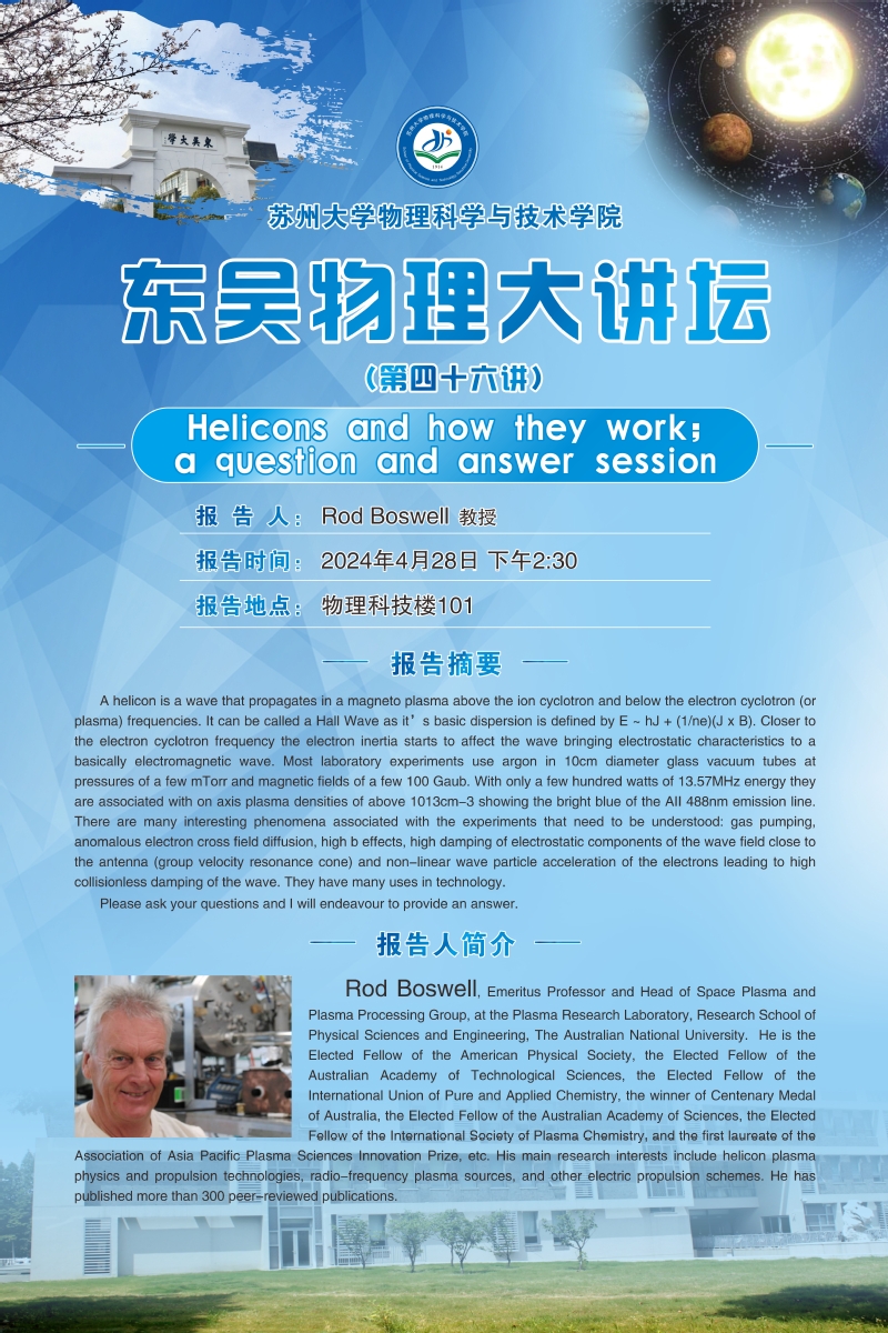 “东吴物理大讲坛“(第四十六讲)——Helicons and how they work; a question and answer session