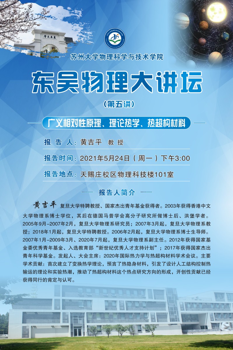 “东吴物理大讲坛“(第五讲)——广义相对性原理、理论热学、热超构材料