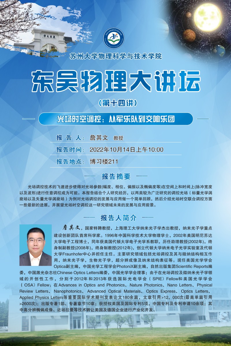 “东吴物理大讲坛“(第十四讲)——光场时空调控:从军乐队到交响乐团