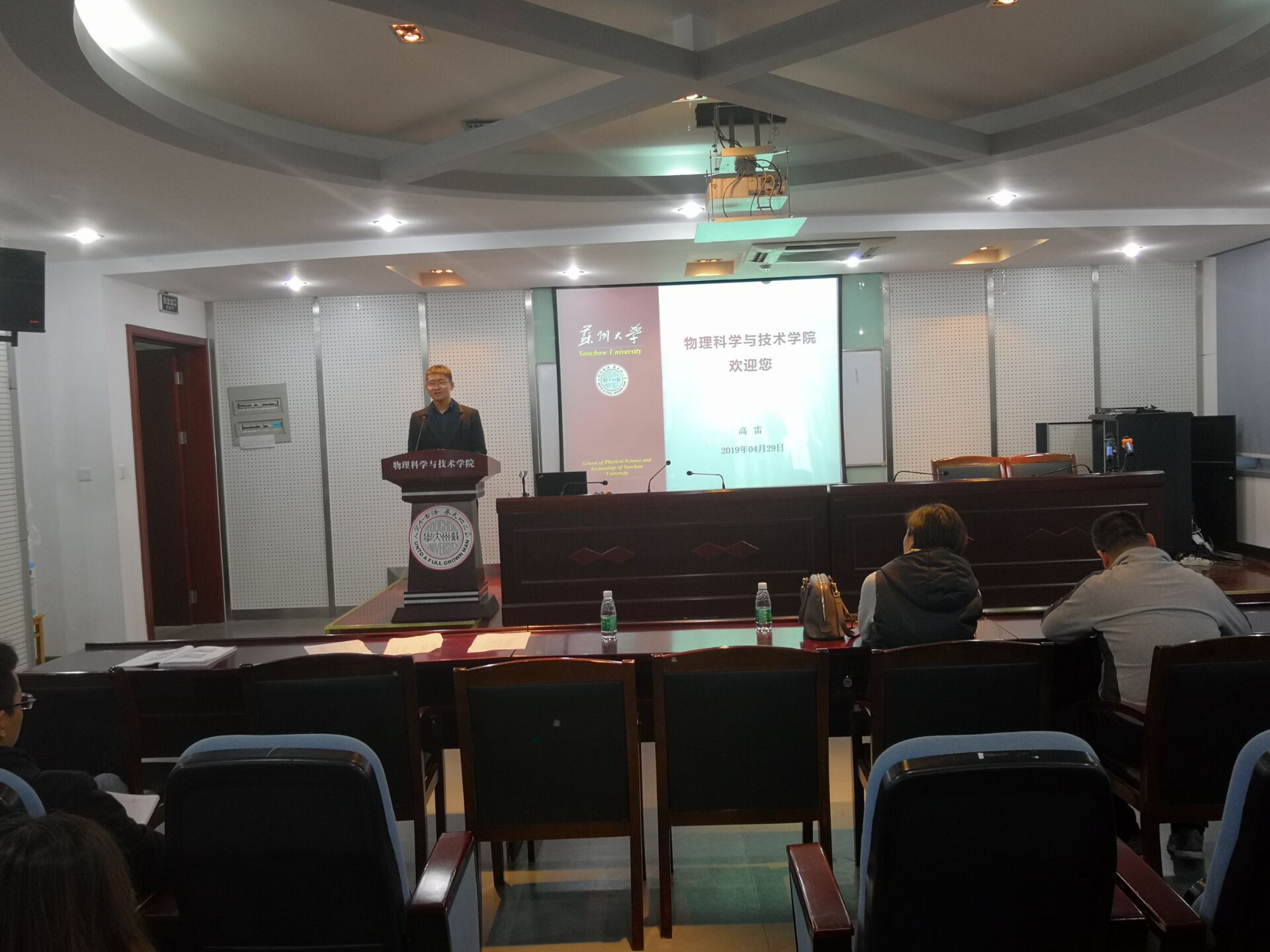 高院长从学校和学院介绍、为什么选择苏大物理、如何准备考研、考什么和考研的一些注意事项这五个方面开展本次招生宣传大会。他首先介绍了苏州大学的和苏大物理科学与技术学院的悠久历史。他指出,物理科学与技术学院前身为东吴大学1914年创办的物理系,经过一百多年的发展,学院在学科建设、科学研究、师资队伍、人才培养和社会服务等方面取得了良好的办学声誉。接着,他从物理科学与技术学院近年来获得优博优硕的情况、师资力量、奖学金及各专业录取情况等方面分析了考取苏州大学物理科学与技术学院有着成功率大、就业率高的优势。随后,高院长从学院研究生的类型、考研的条件以及如何合理安排考研准备时间等方面向同学们详细介绍了备考时各个阶段的侧重点。最后,他分析了考试内容与考试形式,对备战安排提出了可行性建议。