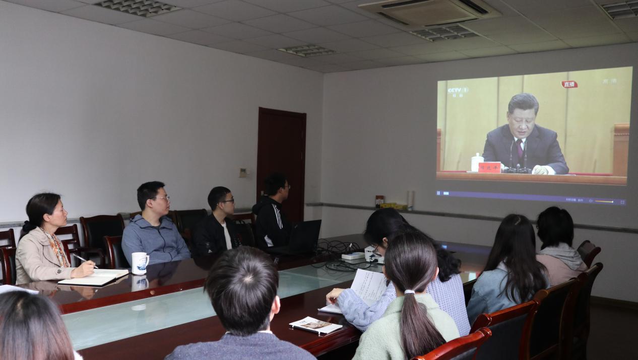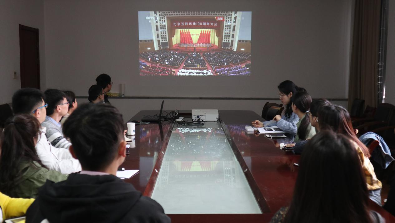 上午10点30分,学院老师和同学准时观看纪念五四运动100周年大会直播。中共中央总书记、国家主席、中央军委主席习近平出席大会并发表重要讲话,大会上习近平总书记对新时代中国青年提出了殷切的希望和建议。习近平总书记强调新时代中国青年面临着难得的人生际遇,应当勇做走在时代前列的奋进者、开拓者、奉献者,并指出发扬五四精神,激励全党全国各族人民特别是新时代中国青年为全面建成小康社会、加快建设社会主义现代化国家、实现中华民族伟大复兴的中国梦而奋斗,具有十分重大的意义。