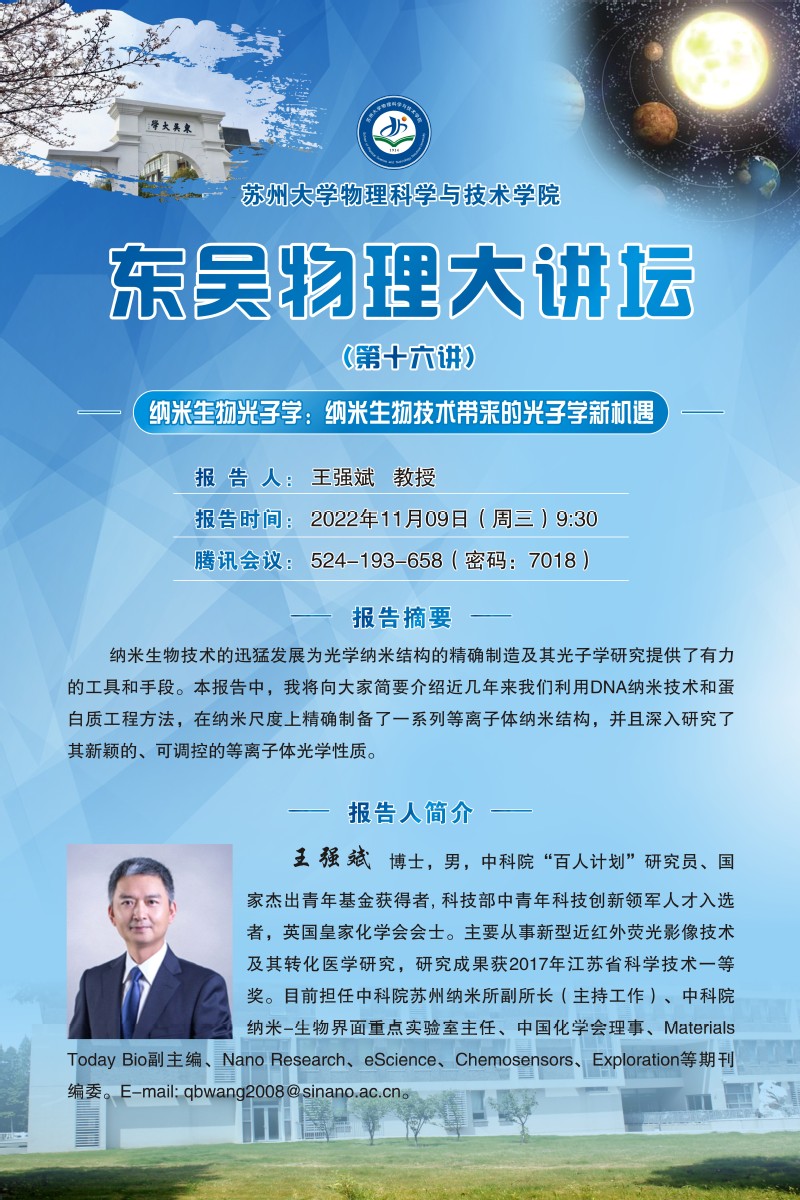 “东吴物理大讲坛”(第十六讲)——纳米生物光子学:纳米生物技术带来的光子学新机遇