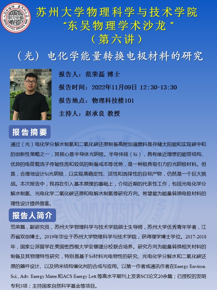 “东吴物理学术沙龙”(第六讲)——范荣磊博士