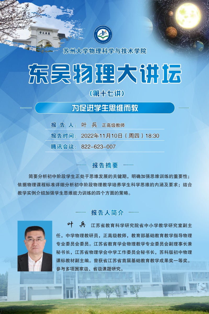 “东吴物理大讲坛”(第十七讲)——为促进学生思维而教