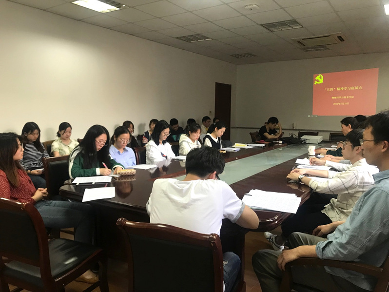 2019年5月10日下午,学院在博习楼221会议室召开了“五四”精神学习座谈会,三个研究生党支部的部分党员、入党积极分子和团内推优人员参加了座谈会,座谈会由研究生辅导员吴亮老师主持。
