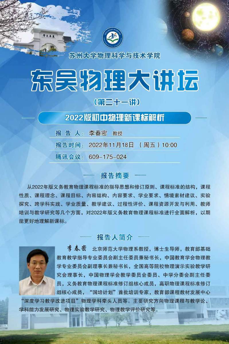 “东吴物理大讲坛”(第二十一讲)——2022版初中物理新课标解析
