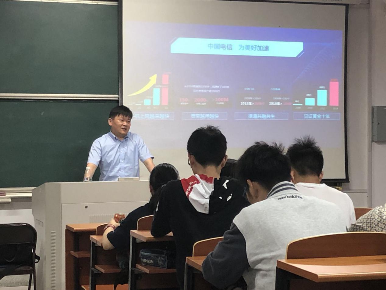 讲座伊始,唐文学先生向物理科学与技术学院与光电科学与工程学院的各位同学介绍了中国电信5G发展现状,介绍了中国电信由3G,4G发展到现在的5G的发展历程。讲述了1G实现了移动通话,2G实现了短信、数字语音和手机上网,3G带来了基于图片的移动互联网,而4G则推动了移动视频的发展。5G网络的大数据流特性则视为物联网、车联网等万物互联的基础。并给出了苏州5G秦淮河灯会,5G智慧医疗教育,将手术室引进大学医疗教育课堂等突破性创新。让同学们在感叹科技突飞猛进的同时,不忘自己身负的时代使命。