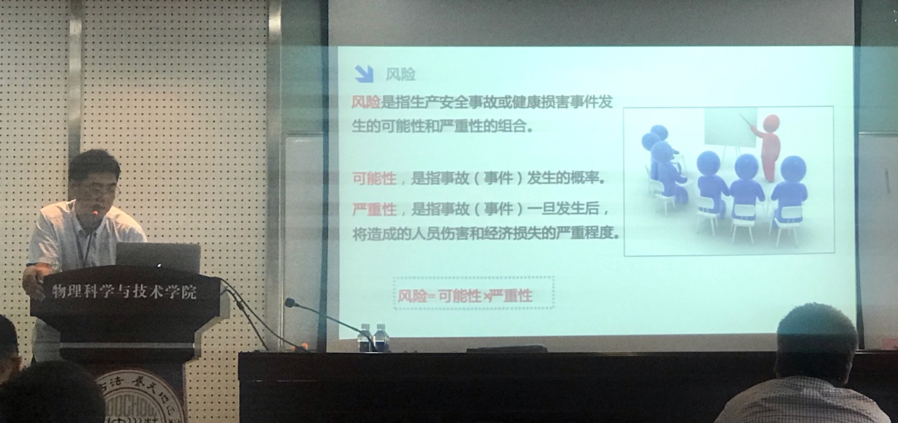 活动伊始,姜老师以“要我安全”到“我要安全”为主题对物理学院实验室安全知识展开了介绍和培训。姜老师以《人民日报》一篇有关实验室安全的文章和复旦投毒案为例,向大家强调了高校实验室安全的重要性。紧接着,姜老师从实验室安全形势严峻及分析、部分欧美大学实验室安全管理启示、安全的敬畏与法律控制、风险分级管控与隐患排查治理等四个方面展开了具体的介绍和培训。