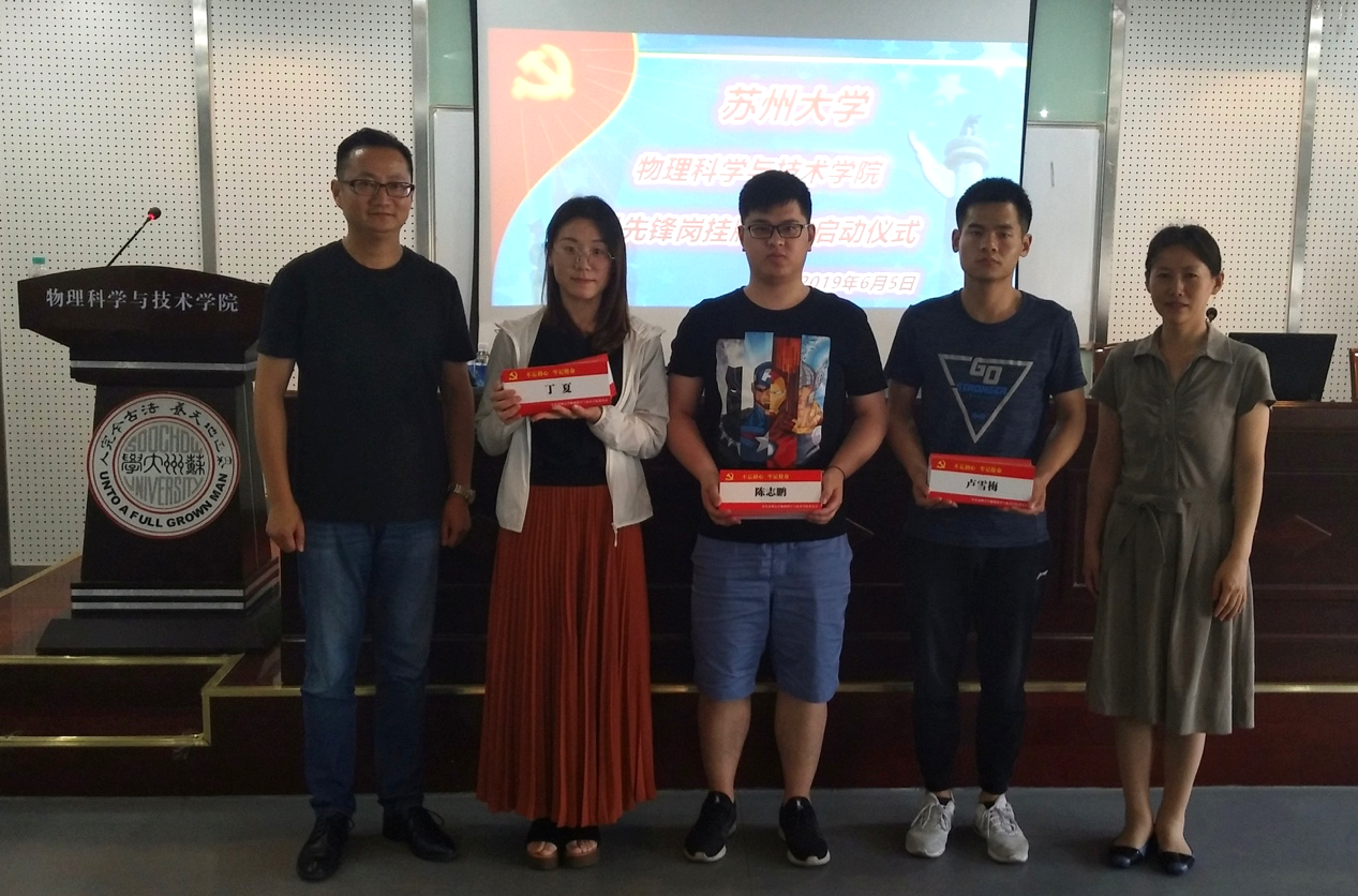 6月5日下午,学院研究生党员先锋岗挂牌工作启动仪式于物理科技楼409举行。学院党委书记孙德芬、全体研究生党员参加了此次仪式。仪式由研究生辅导员吴亮老师主持。
