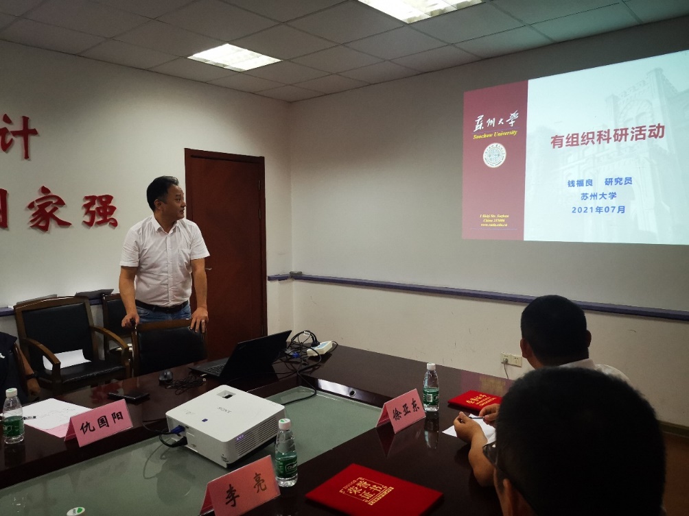 钱福良处长从国家科技体制机制改革、科技创新发展和管理的新要求、有组织科研创新活动的演变及苏大科研创新建设成效等方面作“有组织科研活动”辅导报告。