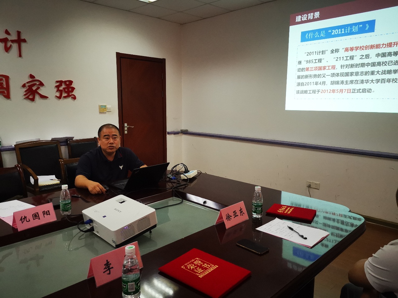 仇国阳主任从背景与现状、理念与行动、成效与展望等方面作“协同创新中心的组建、培育及管理”辅导报告。