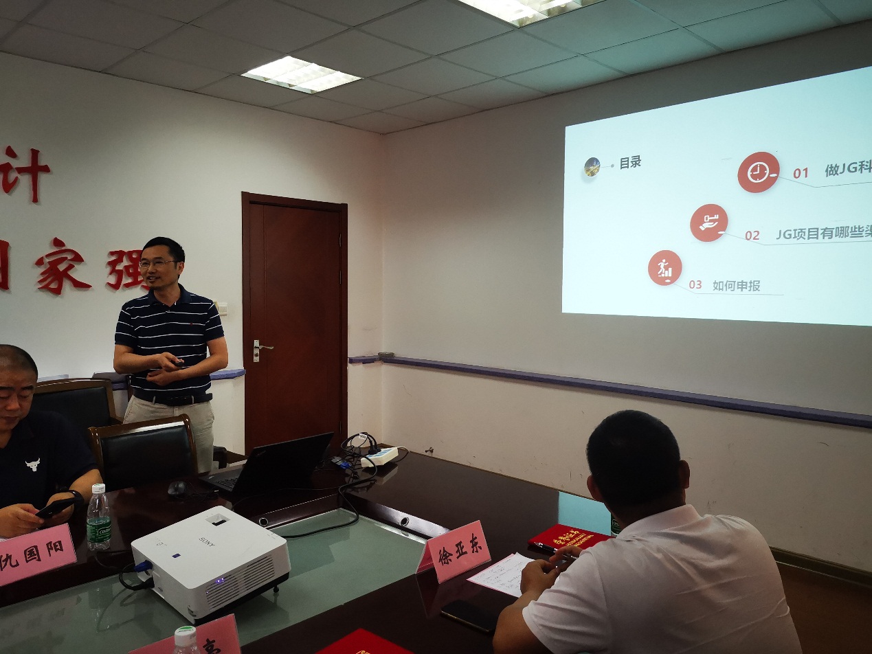 陈德斌副处长从做JG科研有大好处、JG项目有哪些渠道、如何申报等方面作“苏州大学军工科研工作推进”辅导报告。