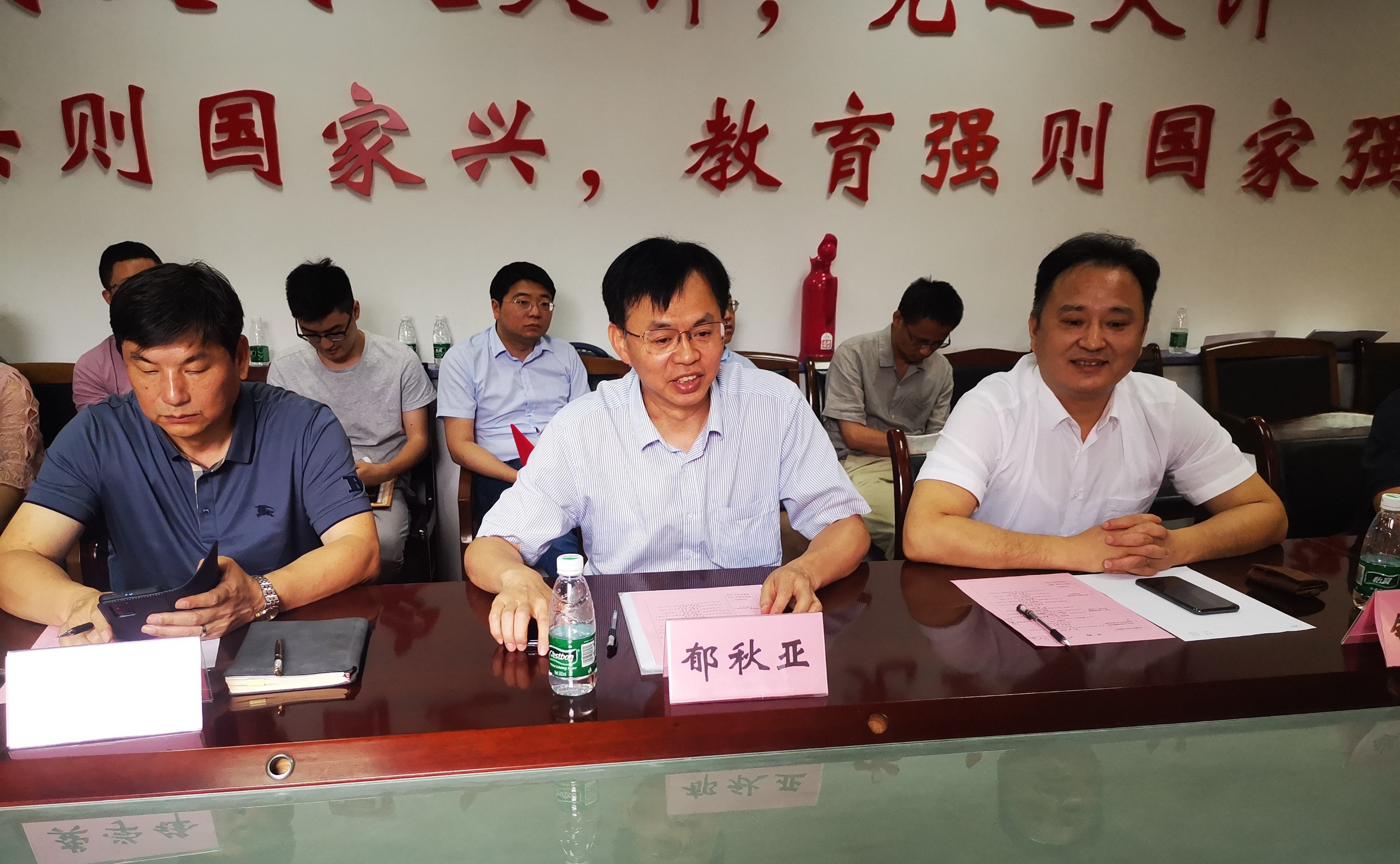 郁秋亚在讲话中充分肯定物理学院近几年来在科研工作高质量发展上取得的成绩,同时感谢物理学院各位老师对校科研工作的大力支持与帮助,希望物理学院越来越好,科研工作更上一层楼,继续为学校科研工作高质量发展做出更大贡献。郁部长也对学院下一步科技工作提出相关希望和要求。