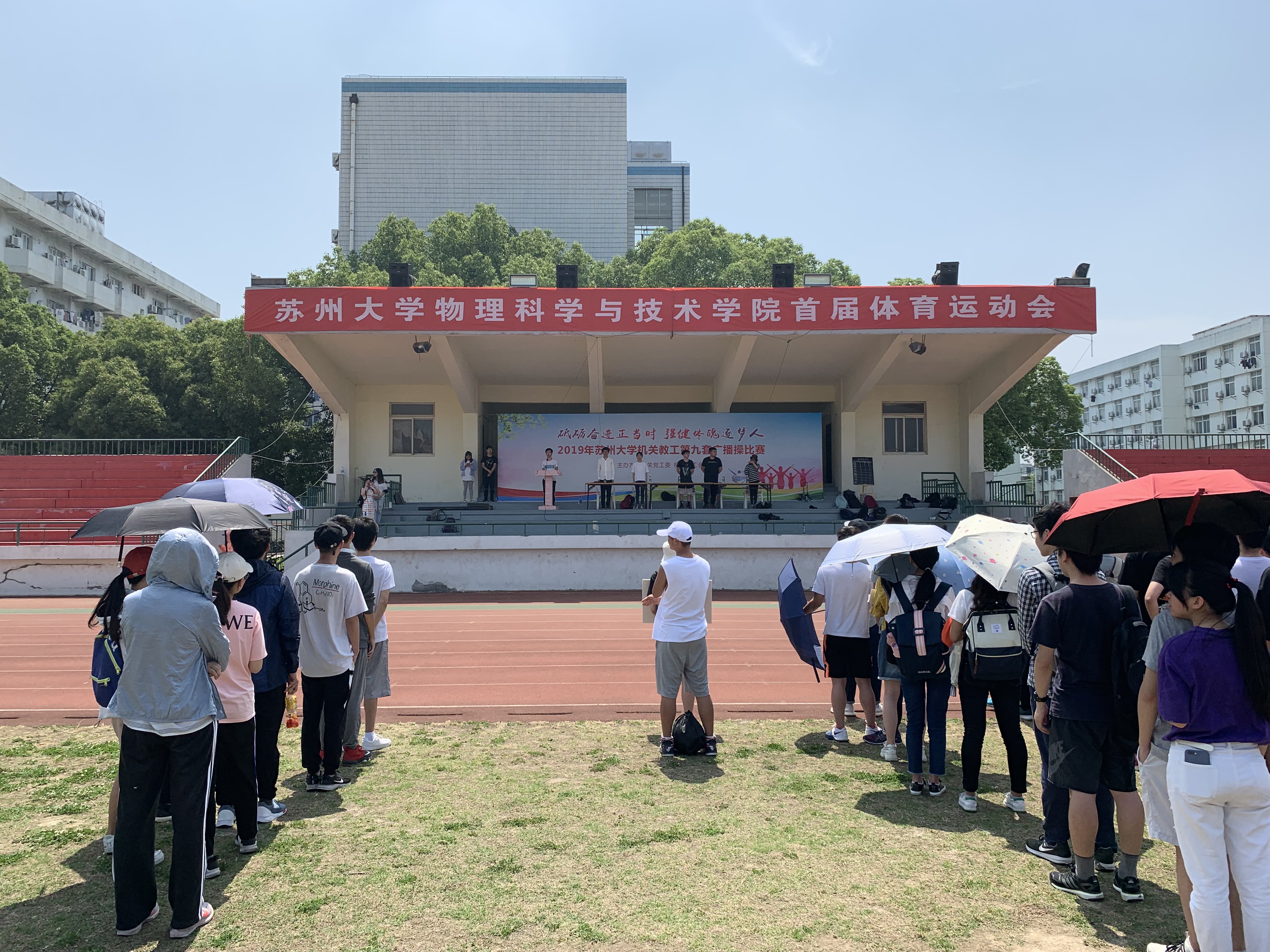 2019年6月5日,苏州大学物理科学与技术学院首届体育运动会暨首届趣味运动会在东区田径场成功举办。为响应 “走下网络,走出宿舍,走向操场”的号召,同时让学生在体育竞技中放松身心,增进同学友谊,增强班级凝聚力,以一个良好的身心状态面对接下来的期末考试,我院学生组织携手合作,共同举办了一场别开生面的运动会。