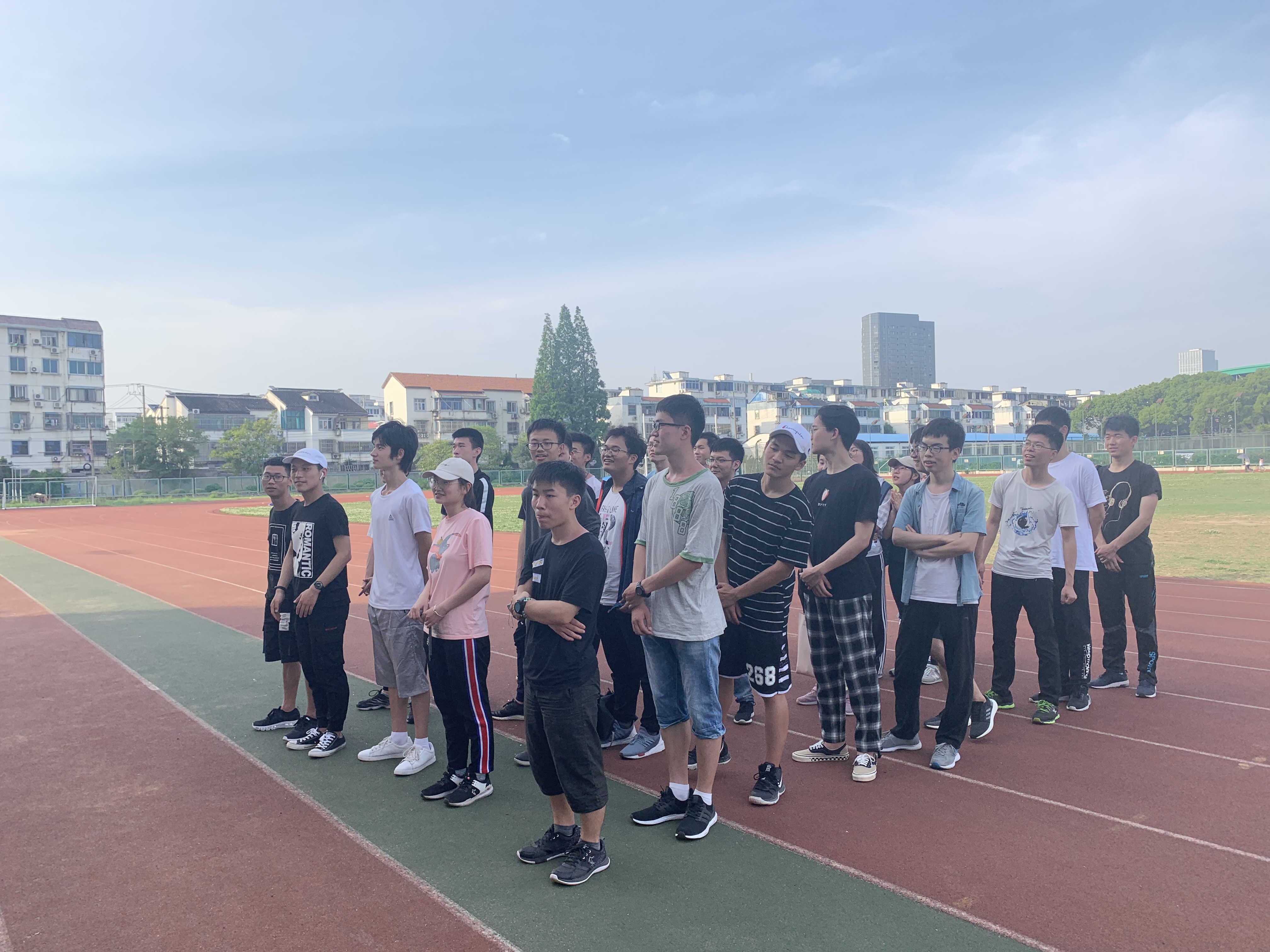 6月5日上午,志愿者们就早早到达田径场,进行场地布置以及器材的准备工作。正值六月初夏,天气日渐炎热,却丝毫挡不住大家的热情,在我院社联工作人员的组织下,志愿者们很快完成了运动会场地的布置工作。