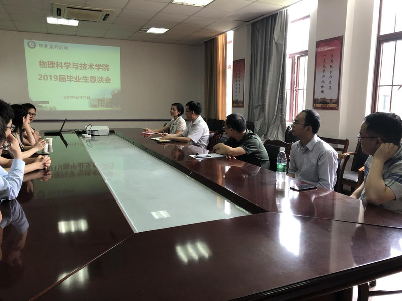 6月17日上午,我院在博习楼221会议室举行苏州大学物理科学与技术学院2019届毕业生恳谈会。学院院长高雷,15级本科生班主任老师张健敏、邓楷模、田维、研究生辅导员吴亮、本科生辅导员郭永坤及陆玫琳等19名毕业生代表参加了恳谈会。会议由学院党委副书记、副院长谢燕兰主持。