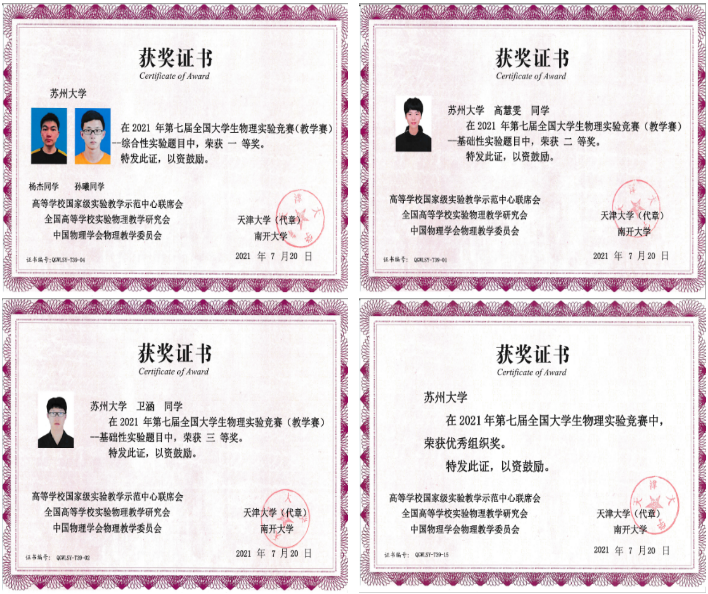 荣誉的背后是指导老师和同学们近一学期的精心准备和切磋琢磨。他们放弃了暑假和节假日的大部分休息时间,在理论基础和实验操作上对普通物理实验和近代物理实验进行了系统而又全面的研究,并且对往届赛题进行认真剖析。赛场上同学们表现优异、沉着冷静,经历整整四个小时的实验,最终取得了优异成绩,展现了苏大物院学子的风采。