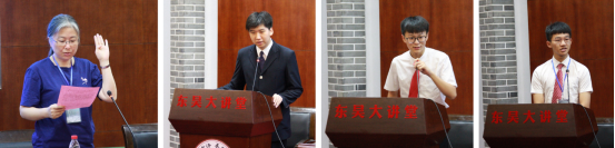 此后,各支参赛队伍进行了展示与自我介绍并合影留念,南京师范大学钟鸣教授代表裁判进行了宣誓,2019IYPT国家队队员王涵悦代表全体参赛同学也进行了庄严的选手宣誓。