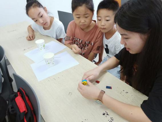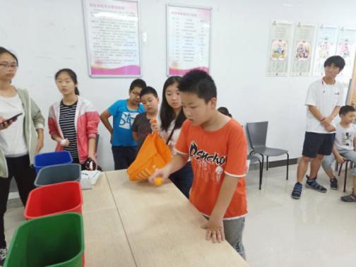 在苏州市姑苏区觅渡社区的活动中志愿者们接触到了一群非常可爱的小孩子们,在“满天星”暑期实践团主讲人秦嘉政、代龙飞、张秀秀等11名同学以及主持人为郭俊岩同学的安排下,为孩子们进行了一次科普讲座,他们运用自己大学课堂上学习知识和通俗易懂、幽默风趣的表达,成功地勾起了孩子们的兴致,在孩子们不断的提问中,一点一点地将所讲述的科学原理完整剖析。除此之外,以理论讲解为主,以实验展示为辅,志愿者们认真地选取了八个实验,在保障孩子们的安全的前提下,让他们看到了许多奇妙的现象,更加加深了他们对于知识的渴求与向往。为了让孩子们在学习知识之余也能够感受到充分快乐,志愿者们还教小朋友们制作手工,同时根据最近较火的垃圾分类问题,设计了游戏,辅以提高小朋友们团结意识的三人四足游戏,让孩子们在动脑过后也能动动手。