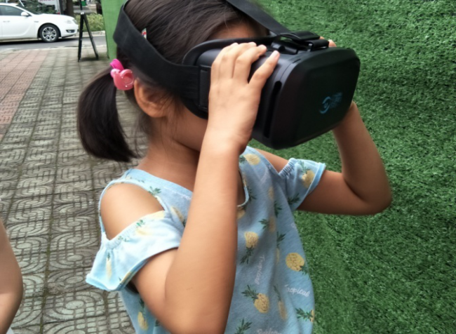 7月16日至17日,团队第三组成员分别走进华通花园四区、玉兰社区和网师巷社区,这一次的科普内容也不同于前几次,这次活动引起孩子们反响最热烈的是VR技术科普。在VR技术讲解中,科普组的志愿者简要介绍了VR技术,并通过电影《头号玩家》的片段进行了详细阐释,同时向大家展示了VR在医疗、军事、办公等方面的应用,孩子们聚精会神地听讲。之后在志愿者的帮助下,孩子们真实地体验了VR眼镜,不同的VR视频里看到的场景不同,有的是过山车,有的是电影院,有的甚至是恐龙世界,李舒心小朋友体验完后兴奋地说道,这是她第一次体验VR,里面的恐龙世界看起来有点吓人,让人真的以为有恐龙在后面追赶。逼真精彩的VR世界让小朋友们流连忘返,活动结束后都想再一次体验。
